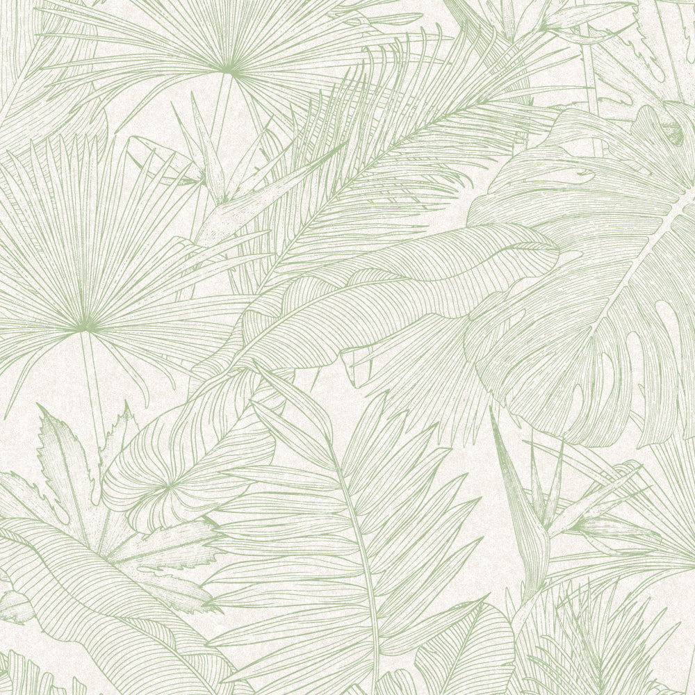 | Delicate tropical leaf sketch on a soft beige base with subtle green lines. |