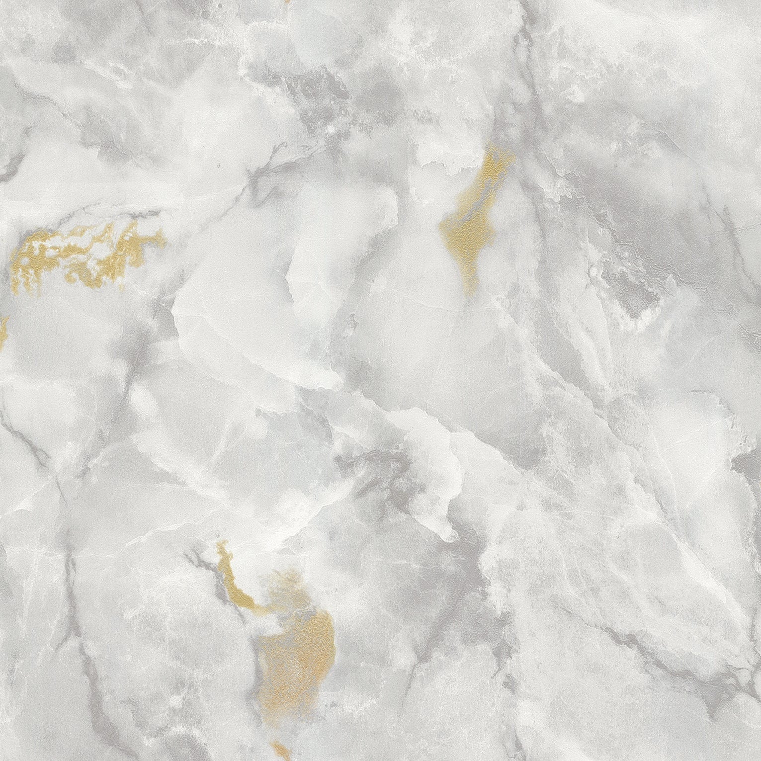 Elegant marble-look wallpaper with light grey tones and subtle gold veining, perfect for bright and refined interiors.Available Colors: Light grey with soft gold accents