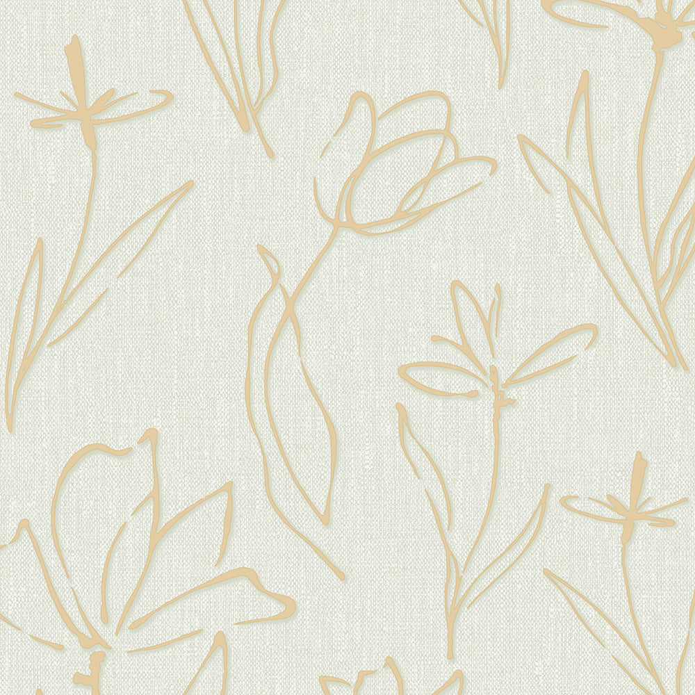 Delicate beige floral outlines on a soft textured background for a modern , airy feel.